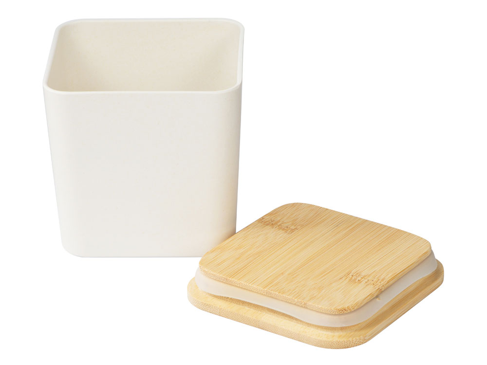Квадратная ёмкость для хранения с бамбуковой крышкой изготовлена на 75% из натуральных материалов. Она подходит для хранения продуктов бакалеи: чая, кофе, сахара, соли и пряностей, круп и макаронных изделий, а также орехов и сухофруктов. Контейнер абсолютно герметичен благодаря силиконовому уплотнителю по периметру крышки, что позволяет чаю, кофе и вашим любимым специям не потерять свой аромат.