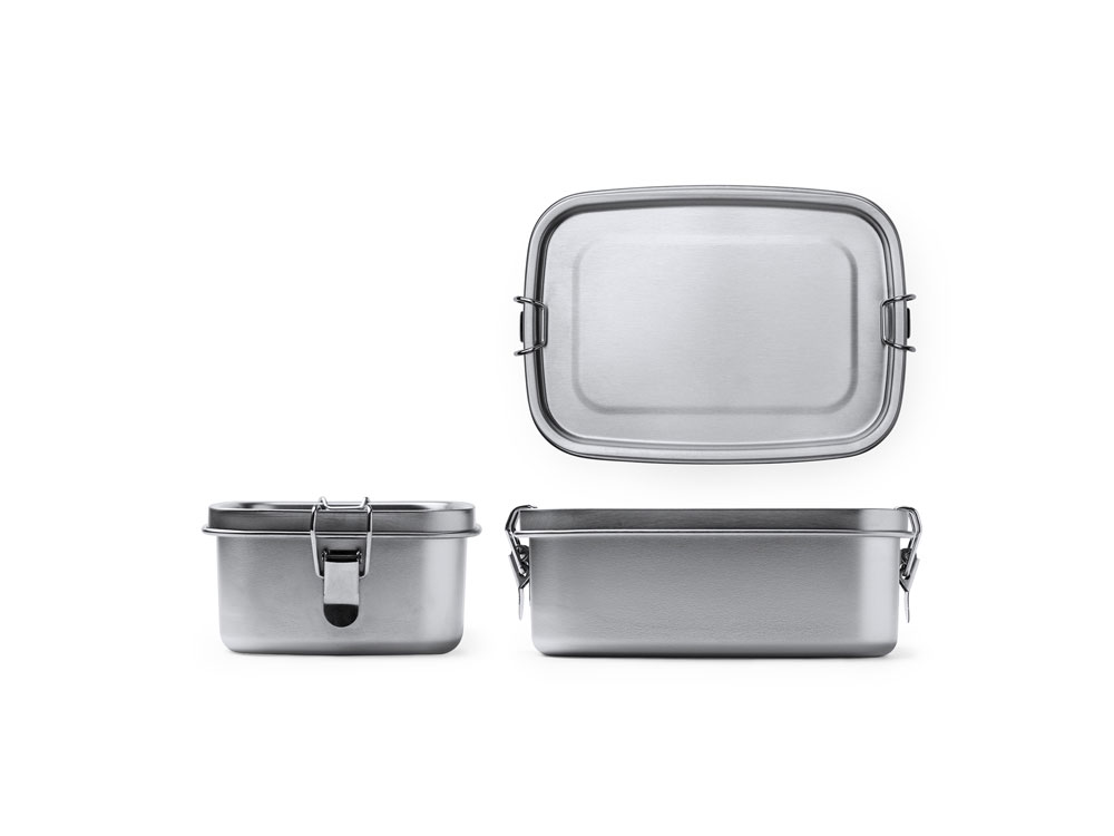 Ланч-бокс из нержавеющей стали 304 с системой закрытия с помощью боковых пряжек. Большая вместимость 1,2 литра для хранения продуктов.