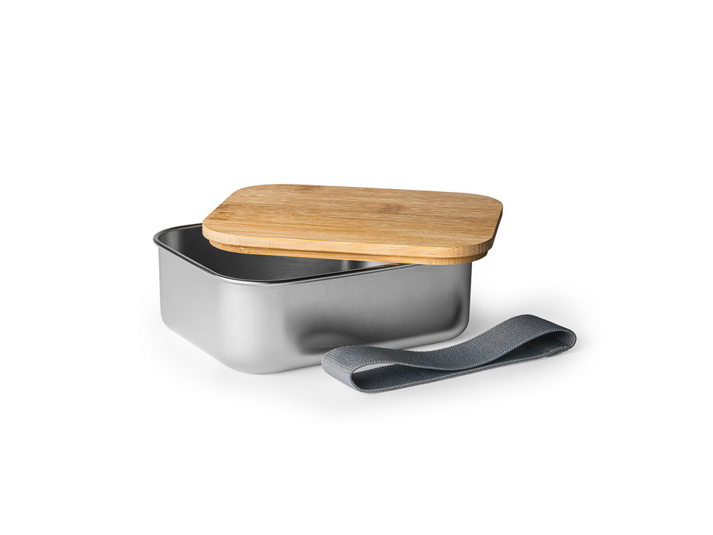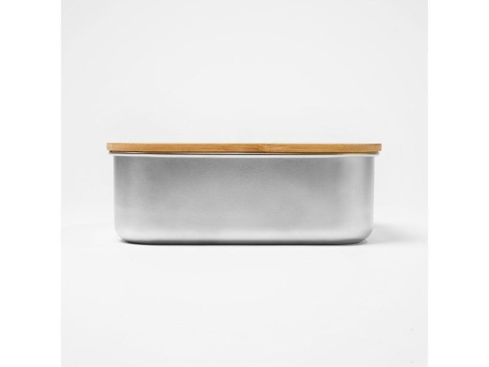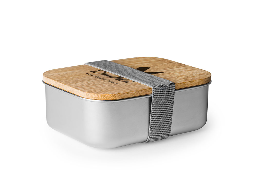 Ланч-бокс из нержавеющей стали 304 с бамбуковой крышкой и защитной резинкой. Объем 800 мл. Идеально подходит для персонализации и продвижения вашей компании.