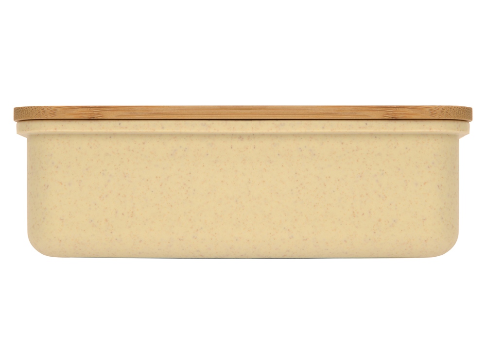 Прекрасный подарок для всех, кто с трепетом и заботой относится к окружающему миру, ведь в его составе 50% экологически чистого пшеничного волокна и 50% пластика. Контейнер для еды закрывается крышкой, выполненной из бамбука, материала, который также не несет никакого вреда природе. В комплекте тканевый ремешок и приборы.