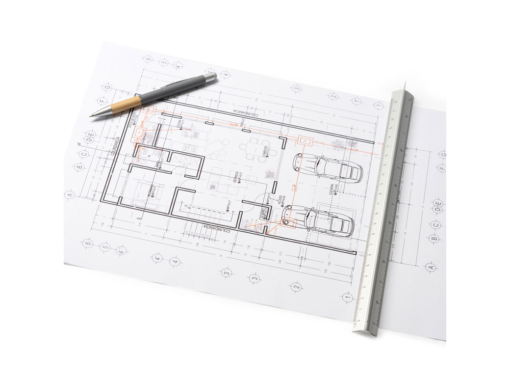 Алюминиевая линейка треугольной формы (30 см). Шкалы: 1:20, 1:25, 1:50, 1:75 и 1:100. Специальная гладкая поверхность для нанесения логотипов.