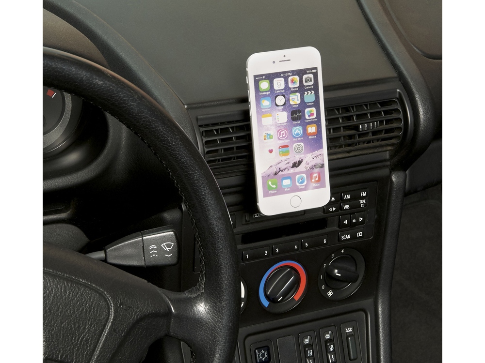 Магнитный держатель для телефона. Этот магнитный держатель для телефона полезен для использования в автомобиле. Он превосходно удерживает телефон во время вождения. Держатель состоит из 2 частей: металлической пластины и держателя телефона. В держателе для телефона есть 4 встроенных магнита, и его можно легко прикрепить к вентиляционной решетке вашего автомобиля. Металлическую пластину можно прикрепить к задней стороне смартфона или крышке телефона. Размер металлической пластины – 6,5 х 4,5 см. АБС-пластик и силикон. Гравировка (оптоволоконный лазер) (Без чернения) на данный товар осуществляется бесплатно. Оплачивается только настройка оборудования в размере 1000 рублей на весь тираж.