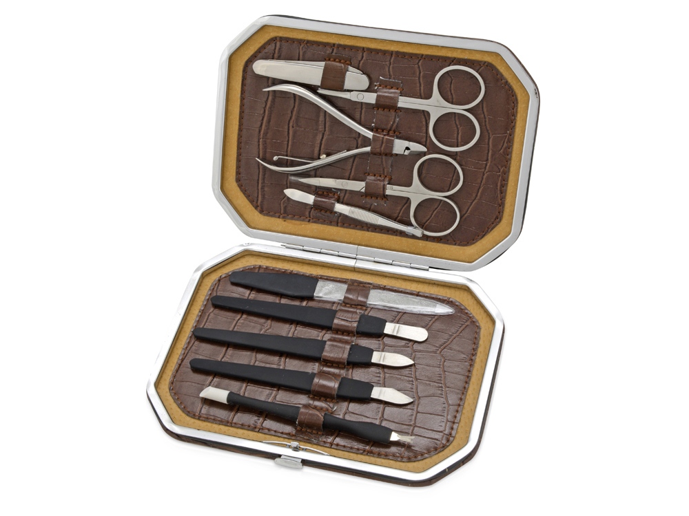 Маникюрный набор «Белла» состоит из 10 специальных инструментов, которые располагаются в компактном футляре из кожзаменителя с принтом под кожу крокодила. Отличный вариант подарка для дам. Гравировка (оптоволоконный лазер) (Без чернения) на данный товар осуществляется бесплатно. Оплачивается только настройка оборудования в размере 1000 рублей на весь тираж.