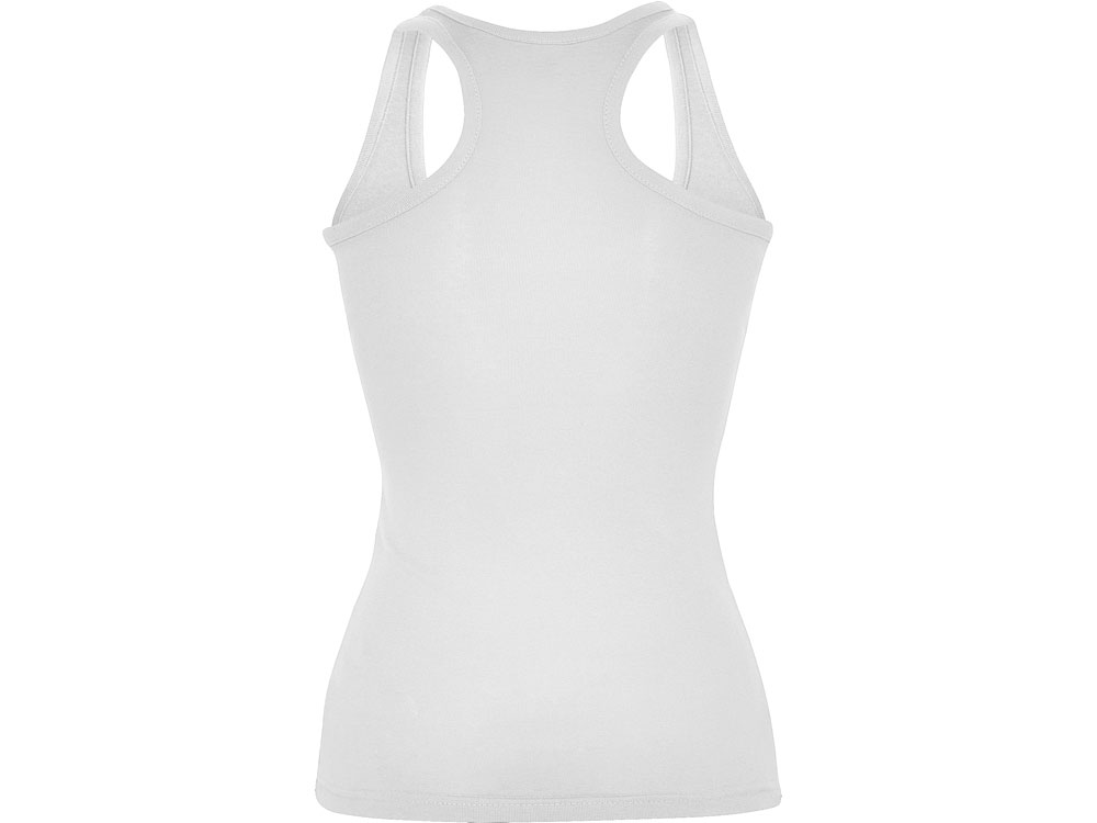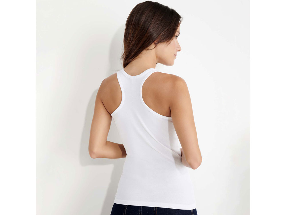Майка приталенного силуэта с глубоким круглым вырезом горловины. Спортивная спинка, боковые швы.