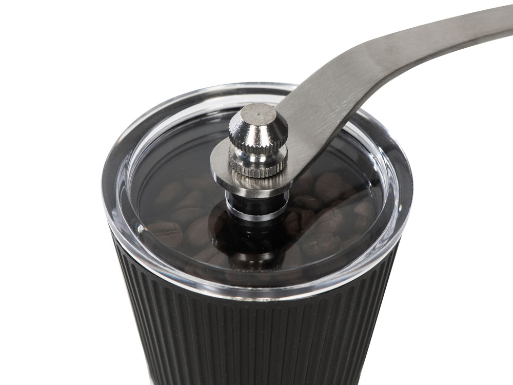 Удобная ручка делает процесс перемалывания простым, не требующим приложения большого количества сил, а рифленая поверхность верхнего резервуара — не дает ладоням скользить.