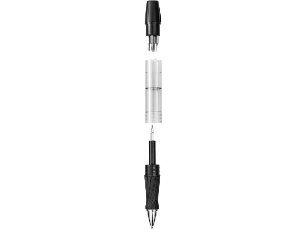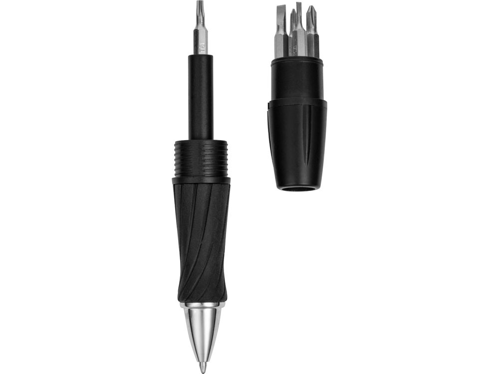 Инструмент Joker 7-в-1 с ручкой и фонариком. Шариковая ручка с поворотным механизмом, корпус- холдер для 5-ти насадок отверток. Светодиодный фонарик с поворотным включением. Батарейки в комплекте. АБС пластик. Тампопечать (1 цвет (цветные изделия)) на данный товар осуществляется бесплатно. Оплачивается только настройка оборудования в размере 4000 рублей на весь тираж.