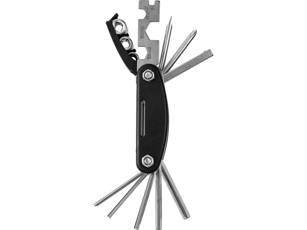 Многофункциональный инструмент от Roq сочетает в себе целых 16 функций: 6 шестигранных ключей (№ 2, № 2,5, № 3, № 4, № 5, № 6), 4 ключа (8 мм, 10 мм, 15 мм, 14GE), адаптер, крестообразную отвертку, шлицевую отвертку и 3 насадки (№ 8, № 9, № 10).