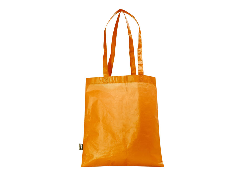 Многоразовая сумка с матовой ламинированной отделкой. Изготовлена из прочного RPET с усиленными ручками.