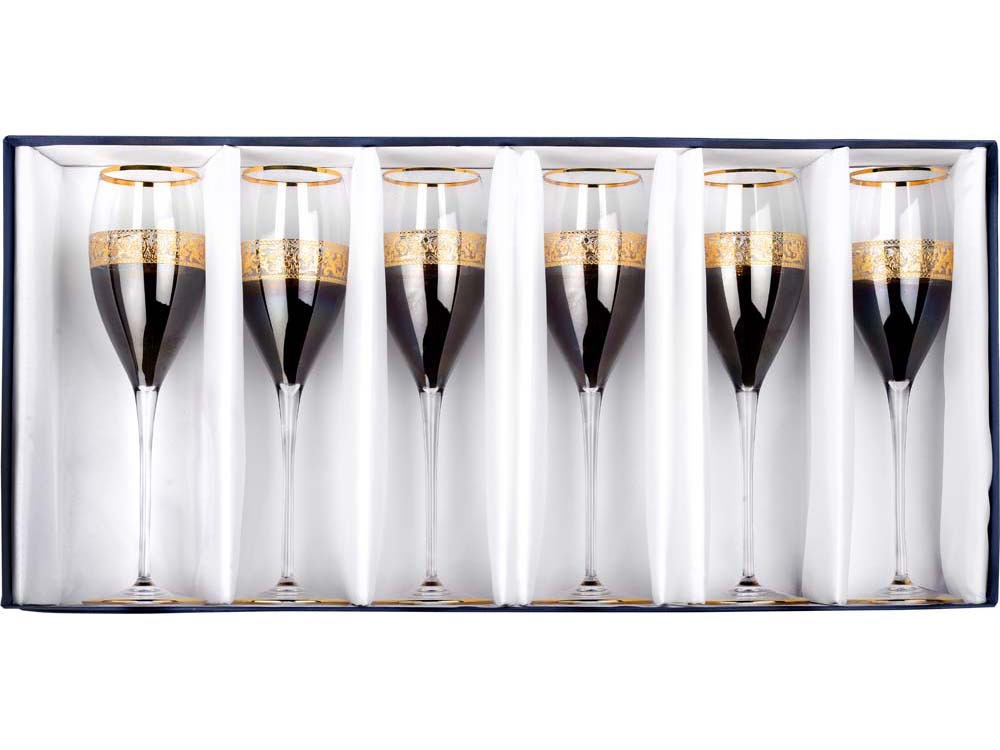 Замечательный набор бокалов для шампанского позволит отметить достижения в бизнесе в кругу партнеров и близких людей. Набор включает в себя 6 бокалов, выполненных из тонкого прозрачного и темного хрусталя с золотым орнаментом. Шильд спектрум (Шильд спектрум) на данный товар осуществляется бесплатно. Оплачивается только настройка оборудования в размере 1000 рублей на весь тираж.