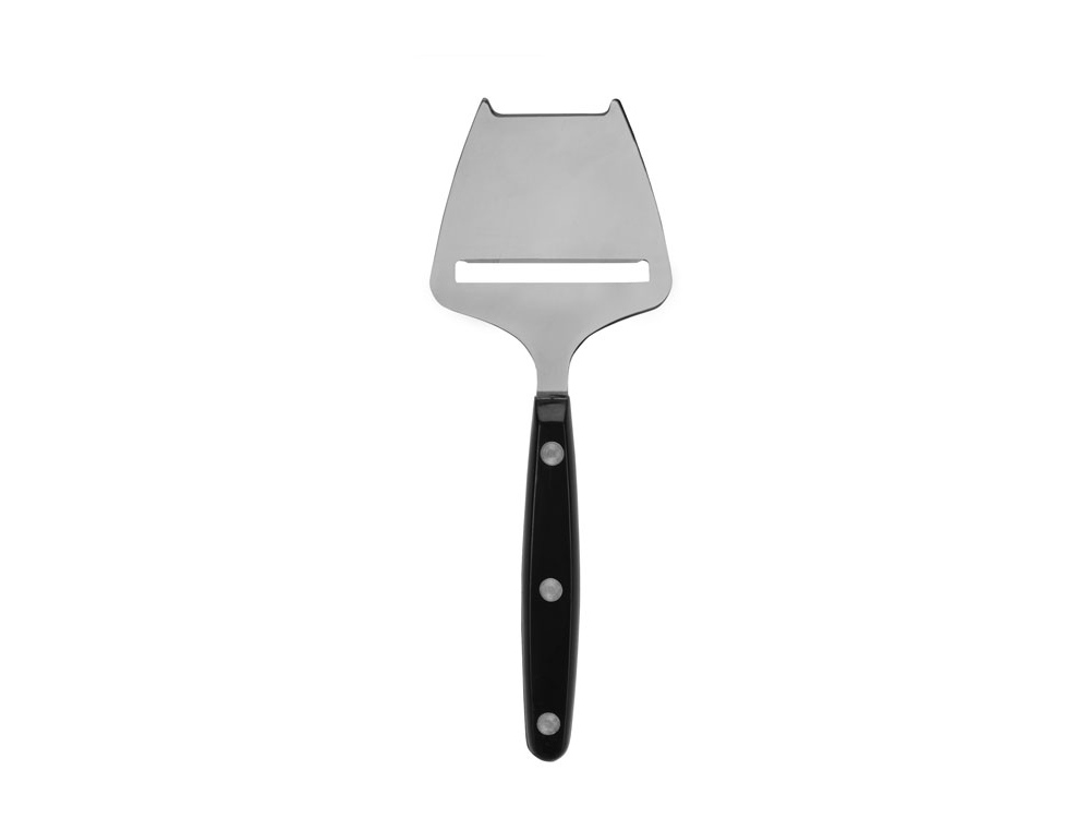 — Узкий нож — для мягких и средней мягкости сортов: воздушные карманы, образованные отверстиями, не дадут сыру прилипнуть к полотну и помогут ровно нарезать тонкие ломтики.