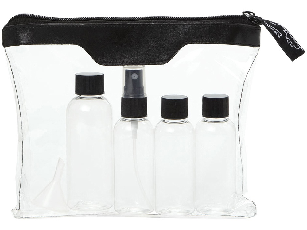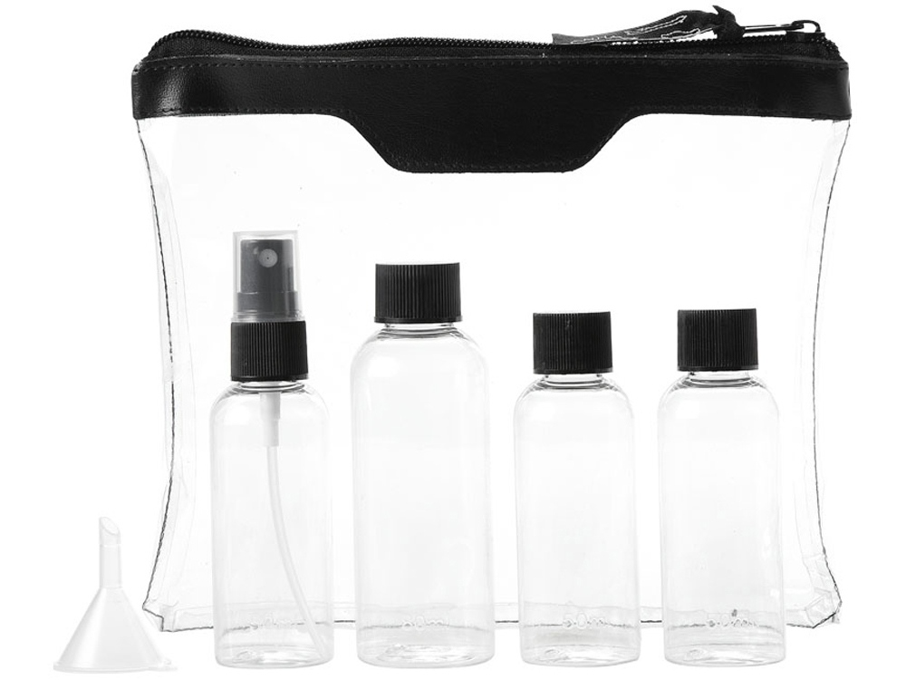 Одобренный дорожный набор бутылок для полетов Munich. Сумка для туалетных принадлежностей, которую можно брать в самолет. Включает 2 бутылки по 50 мл, 1 бутылку на 90 мл, 1 пульверизатор и воронку. Бутылки, пульверизатор и воронка упакованы в полиэтиленовый кулек отдельно от чехла. ПВХ. Тампопечать (1 цвет (цветные изделия)) на данный товар осуществляется бесплатно. Оплачивается только настройка оборудования в размере 4000 рублей на весь тираж.