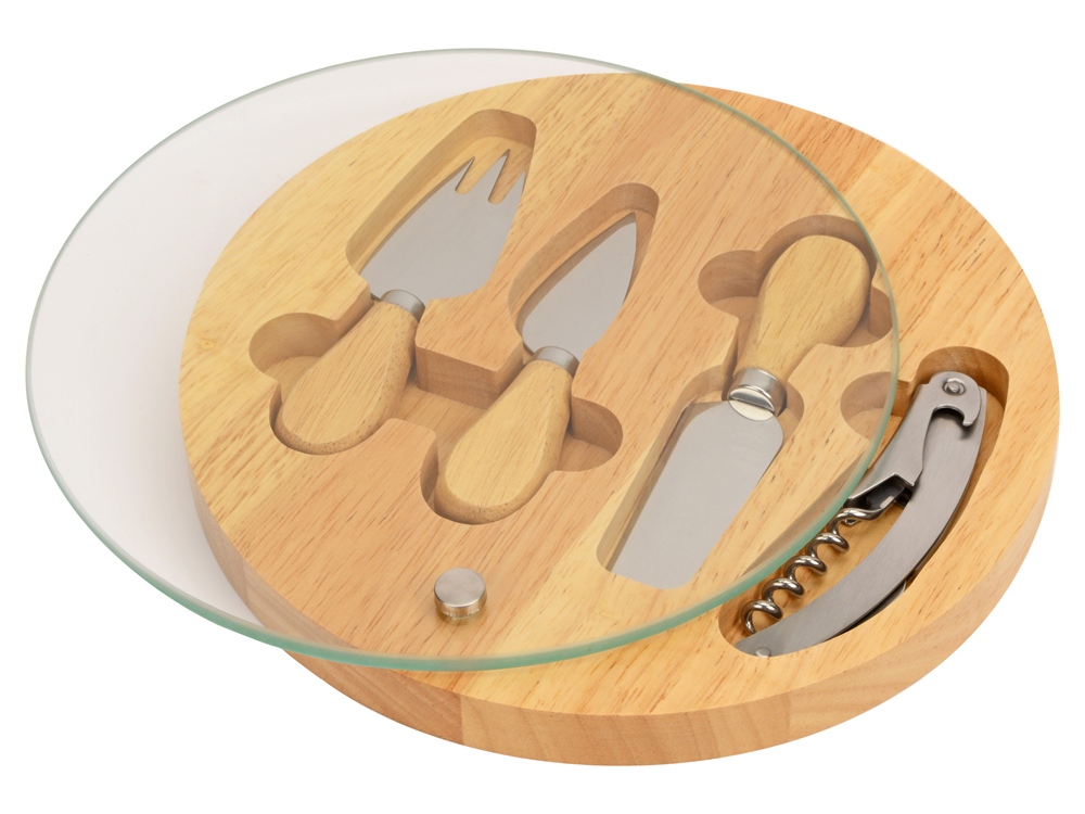 Набор «Rendezvous» — отличный подарок для тех, кто любит приятно провести вечер за бокальчиком любимого вина и вкусных закусок. Набор включает включает в себя 3 вида ножей для разных сортов сыра и винный штопор. Все предметы выполнены из высококачественных материалов. Поставляется в стильной деревянной коробке со стеклянной крышкой, на которой выигрышно будет смотреться любой корпоративный слоган или логотип компании.