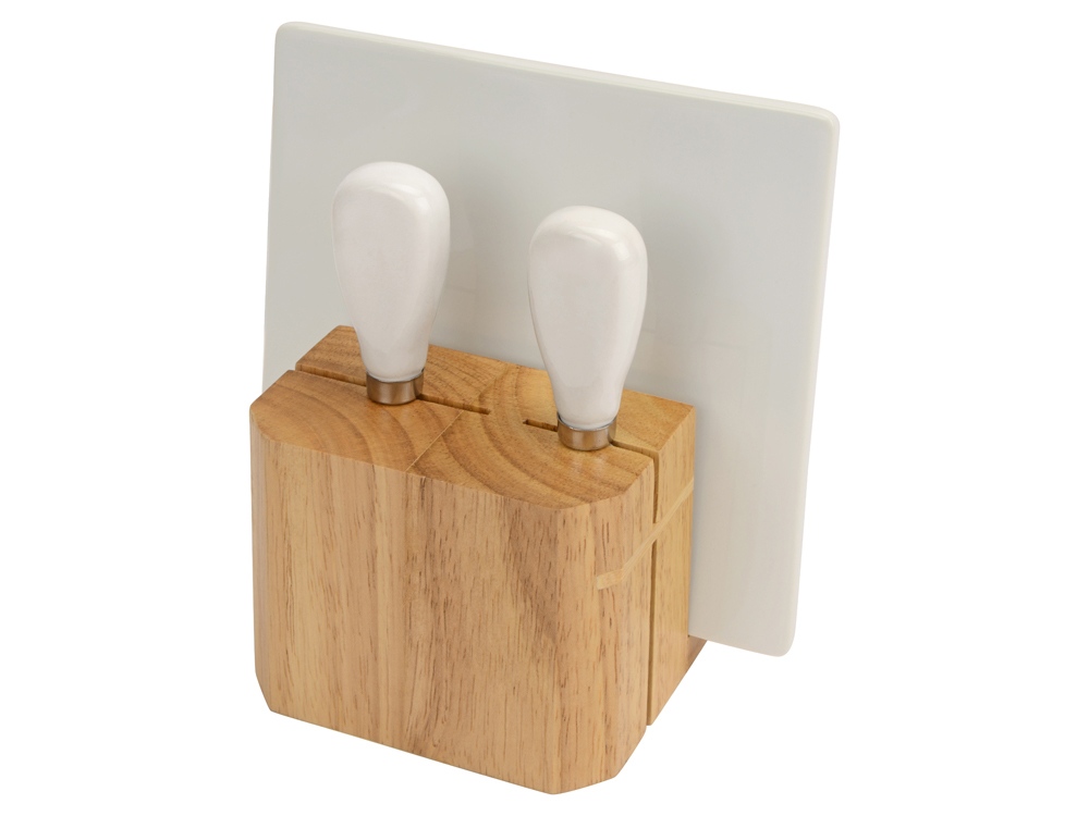 Набор для сыра «Cheese Break» предназначен для нарезки и подачи разных сортов сыра и любых других закусок. Ножи имеют белые керамические рукоятки, а доска полностью выполнена из керамики. Предметы устанавливаются в удобную деревянную подставку, в которой их можно хранить после использования.