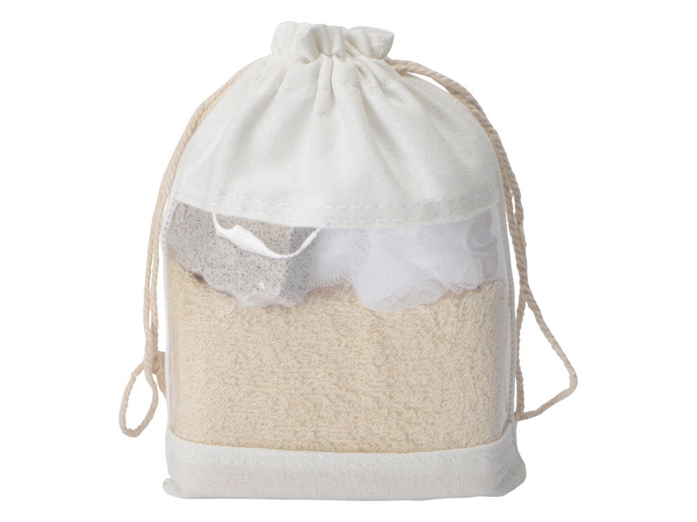 | Материал товара | сумка - полиэстер, хлопок с ПВХ, губка для ванны - полиэстер, мочалка - полиэтилен, пемза - известняк |
