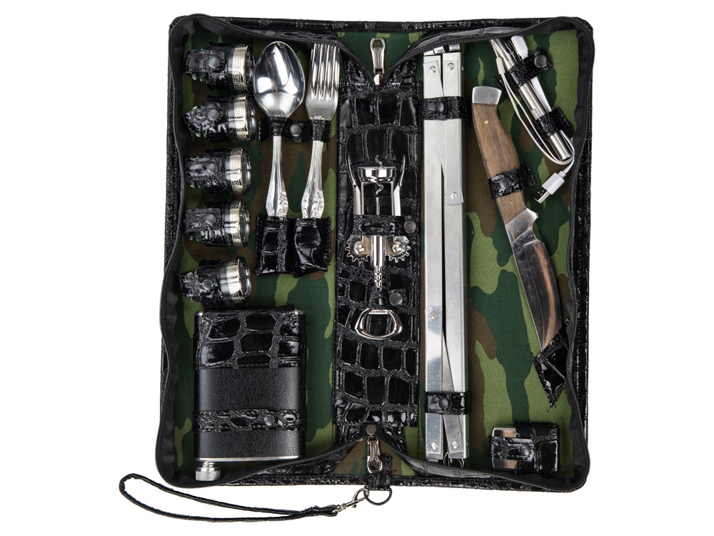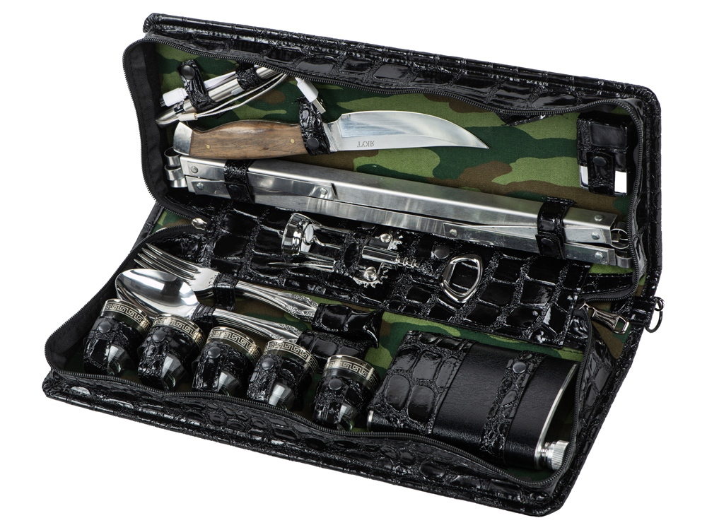 Оригинальный дорожный набор на 5 персон в барсетке с удобным ремешком для переноски.