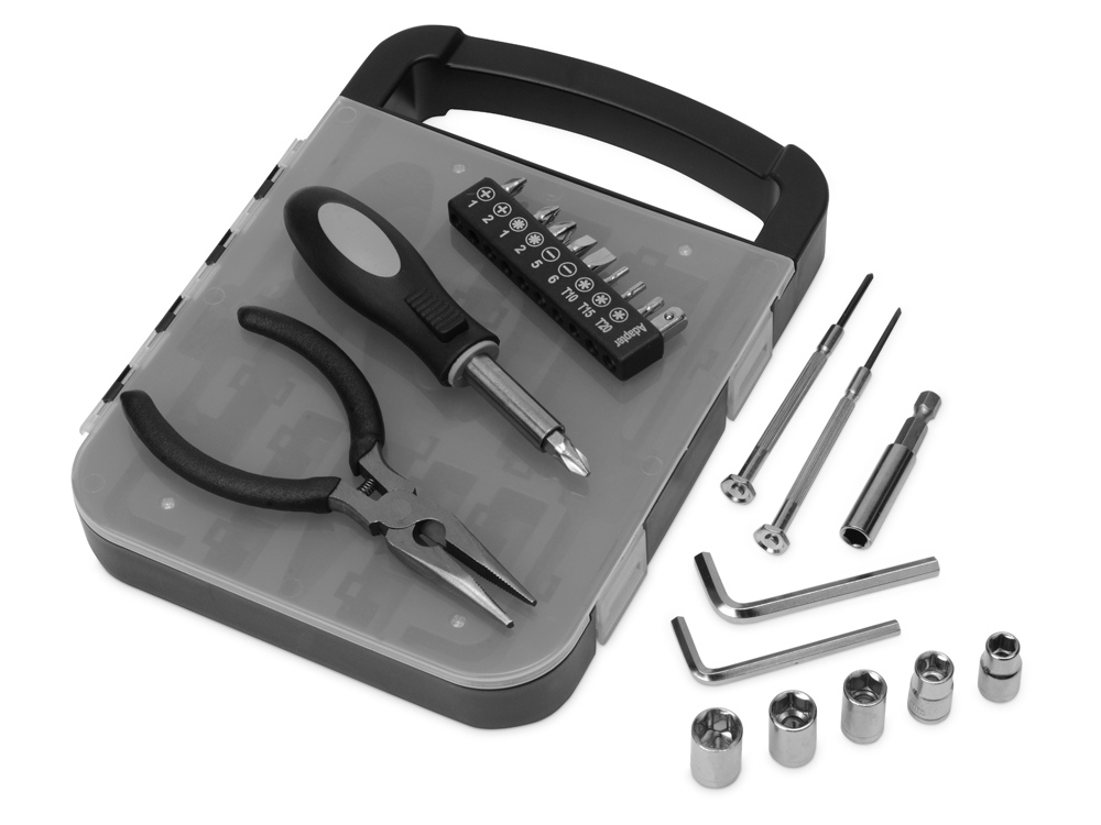 Набор инструментов в удобном пластиковом кейсе, состоит из 6 инструментов и 16 насадок: