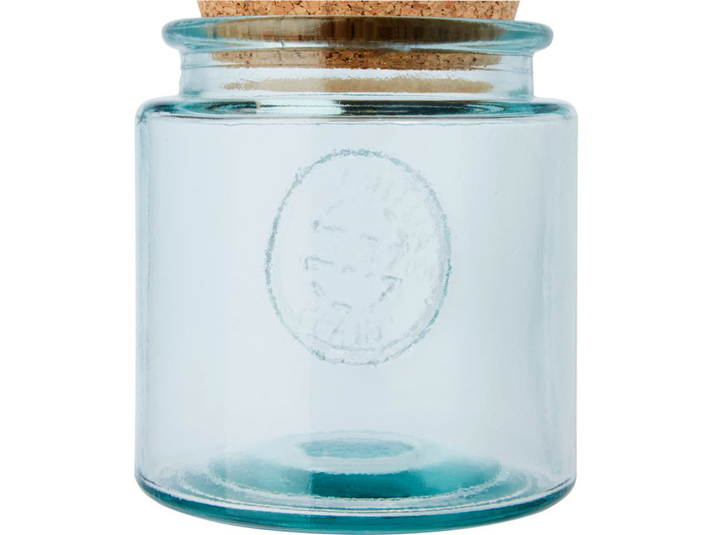 Набор состоит из 3 банок из переработанного стекла с пробковыми крышками. Объем каждой банки — 800 мл. Переработанное стекло не отличается ничем по качеству от обычного, но при этом является более экологичным, ведь на изготовление этого материала тратится меньше энергии, сырья и примесей. Размер банки: высота 13 см, диаметр 12 см.