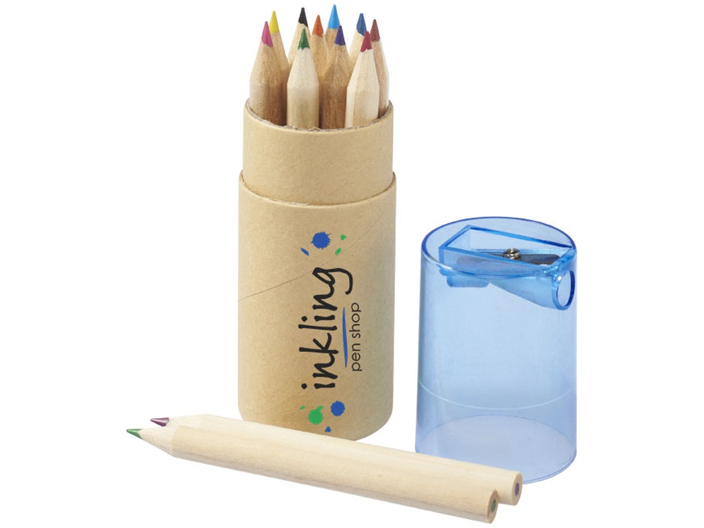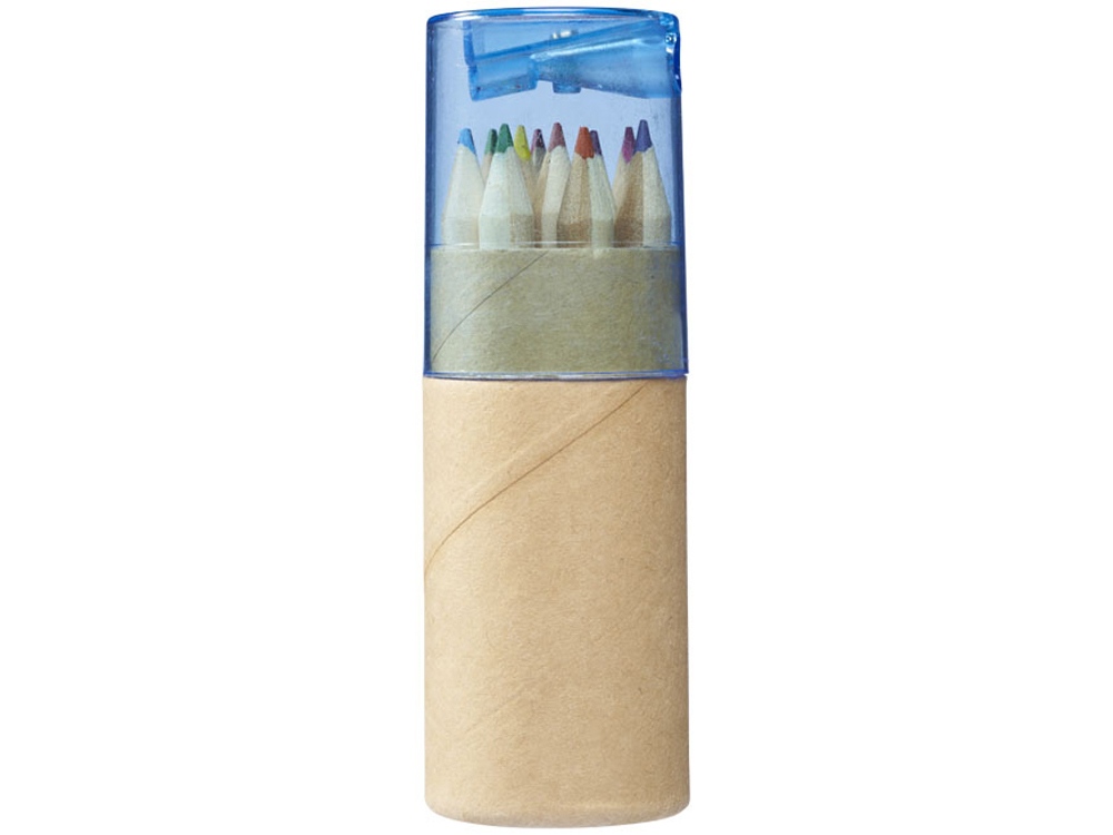 Набор карандашей 12 единиц. 12 цветных карандашей в цилиндрической коробке с точилкой в пластиковой крышке. Бумага. Тампопечать (1 цвет (цветные изделия)) на данный товар осуществляется бесплатно. Оплачивается только настройка оборудования в размере 4000 рублей на весь тираж.