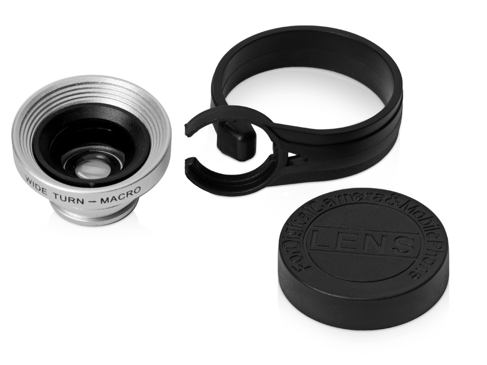Делайте более интересные фотографии своим смартфоном при помощи этого удобного набора объективов со специальными эффектами. Просто установите широкоугольный объектив или объектив «рыбий глаз» или «макро» на свой смартфон, чтобы делать фотографии с необходимыми эффектами. Взгляните на мир немного по-другому! Предлагается в подарочной коробке Avenue (размер: 8,5 x 8,5 x 3,5 см). Тампопечать (1 цвет (цветные изделия)) на данный товар осуществляется бесплатно. Оплачивается только настройка оборудования в размере 4000 рублей на весь тираж.