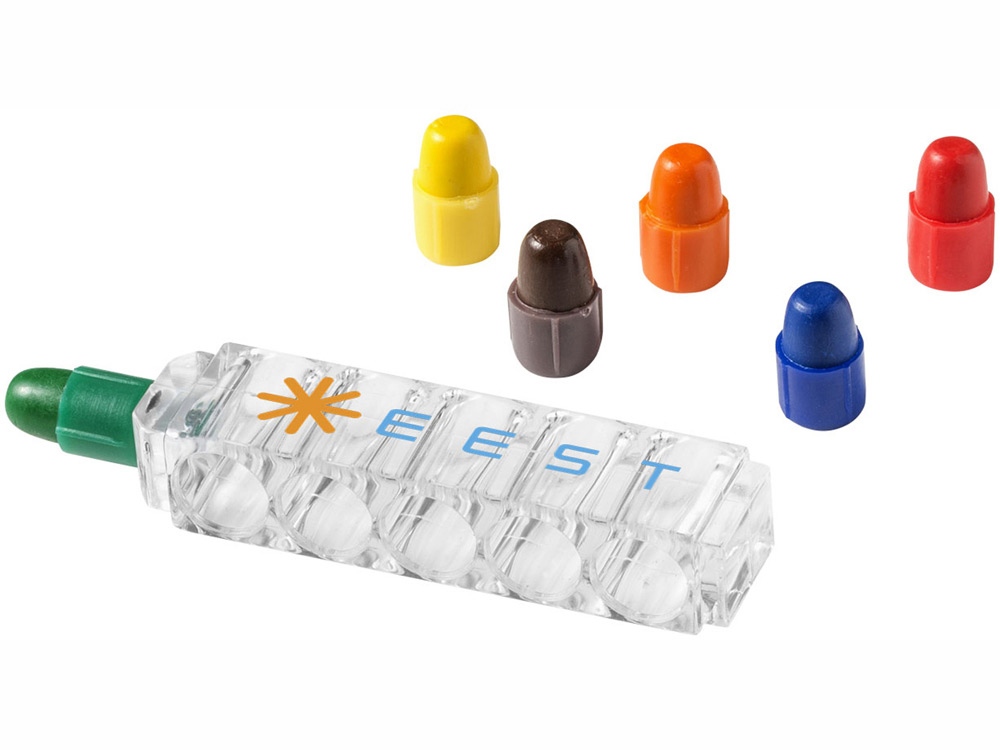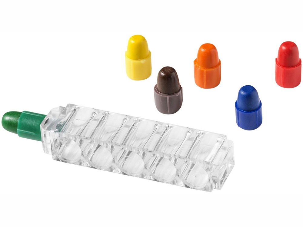 6 цветных восковых карандашей в прозрачной упаковке. Нанесение не делается на отдельные элементы набора. Тампопечать (1 цвет (цветные изделия)) на данный товар осуществляется бесплатно. Оплачивается только настройка оборудования в размере 4000 рублей на весь тираж.