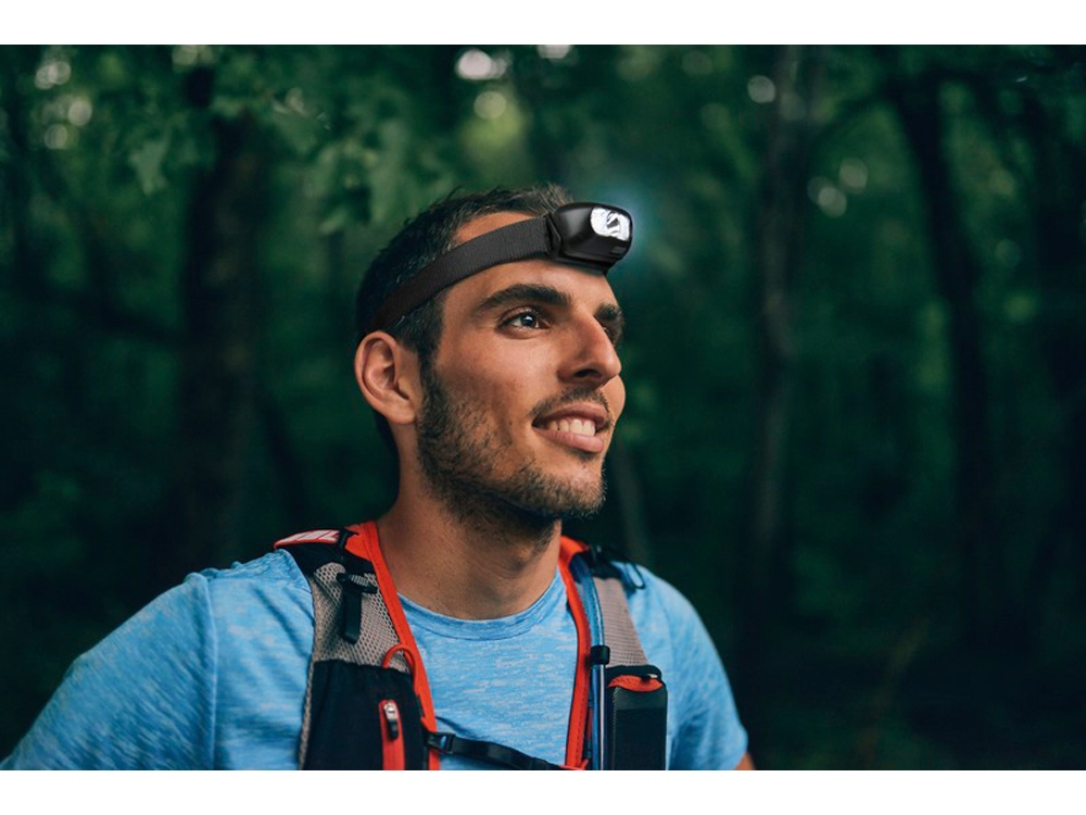 Высокомощный налобный фонарик с возможностью зарядки и защитой класса IPX 3 позволит избежать разрядки батареек и идеально подходит при необходимости в освещении во время активного отдыха. Удобное регулируемое налобное крепление из полиэстера имеет окружность 60 см в нерастянутом виде. Налобный фонарь имеет небольшой вес (58 грамм) и регулируется под углом до 45 градусов. Светодиод мощностью 3 Вт генерирует свет яркостью 90 люмен с длиной луча до 100 метров и работает до 4,5 часов. Также фонарь оборудован 2 красными светодиодами с 3 режимами (высокий/средний/слабый). Емкость встроенной литиевой батареи составляет 400 мАч. Поставляется с инструкцией по эксплуатации в подарочной коробке из переработанного картона (7 x 6,5 x 5 см).