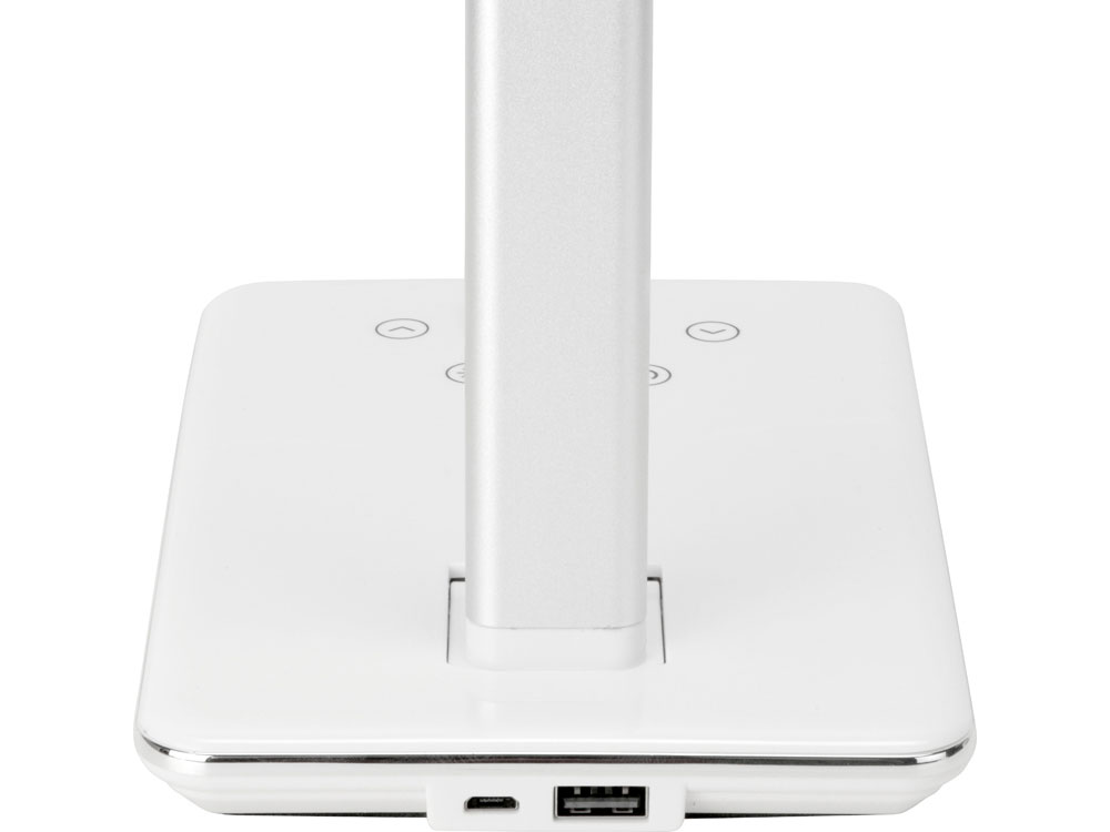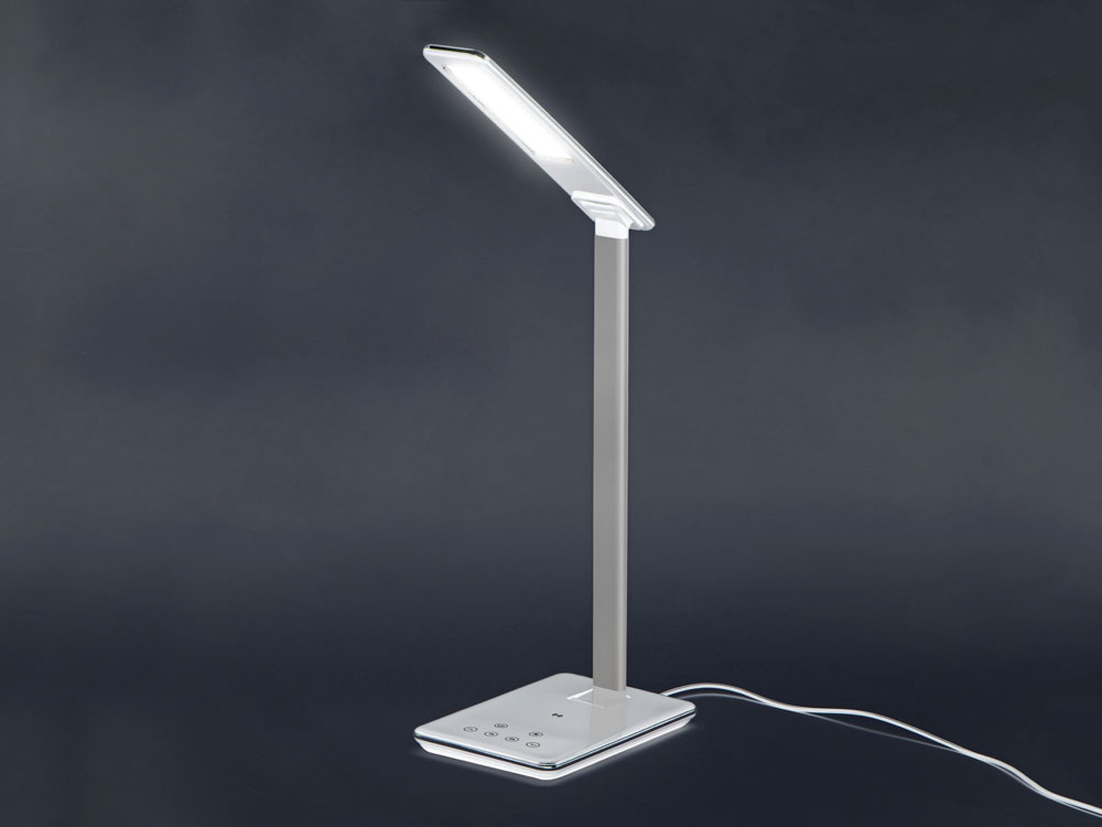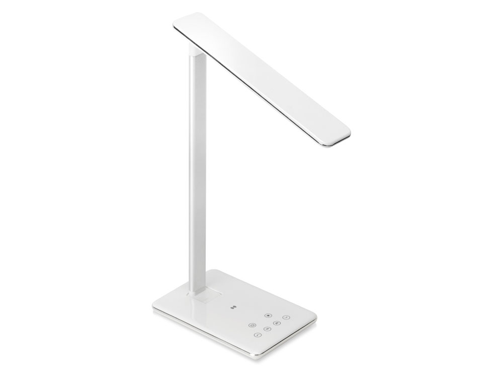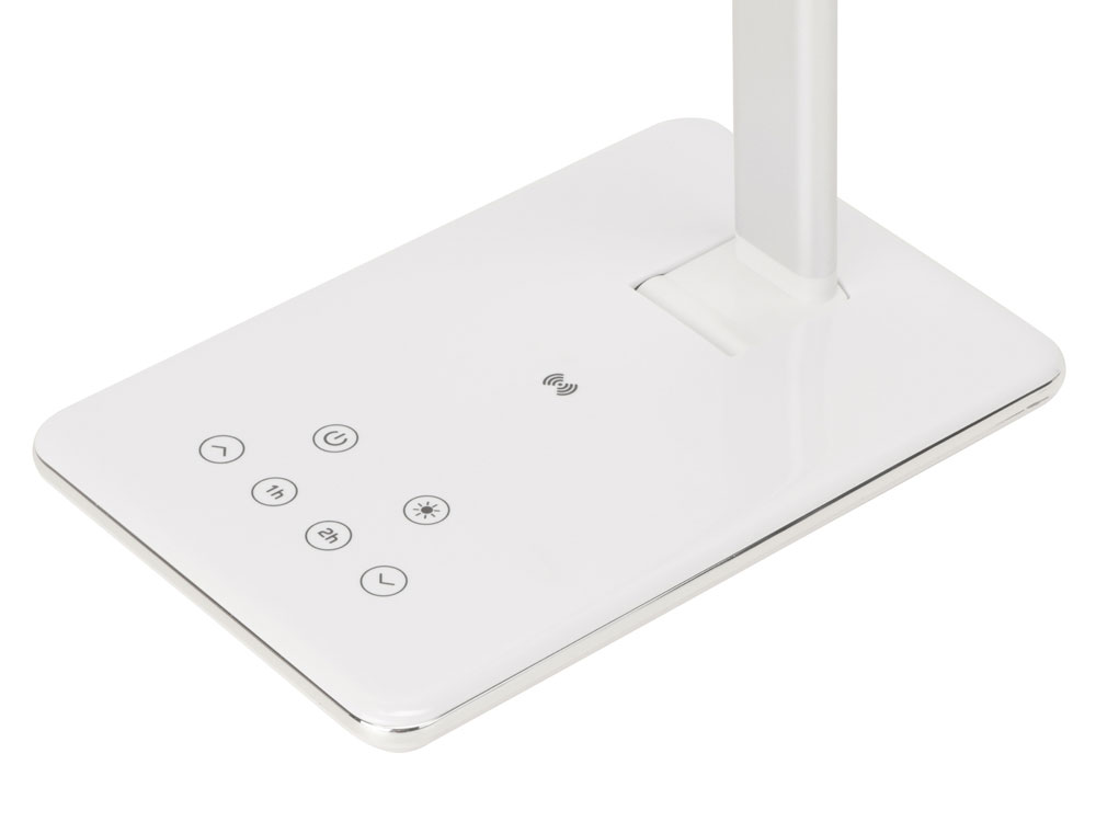«Умная» функциональная настольная лампа с 3 режимами освещения: теплый желтый свет, нейтральный свет и холодный свет. Равномерно мягкий свет приятен и безопасен для глаз (отсутствует мерцание). На панели основания лампы можно также регулировать яркость и ставить таймер отключения (1 или 2 часа). В лампе предусмотрена беспроводная зарядка Qi-совместимы устройств, чтобы зарядить смартфон – просто разместите его в центре основания, и зарядка автоматически начнется. Выходной порт USB для проводной зарядки устройств. Благодаря продуманной конструкции лампа может принимать практически любые положения.