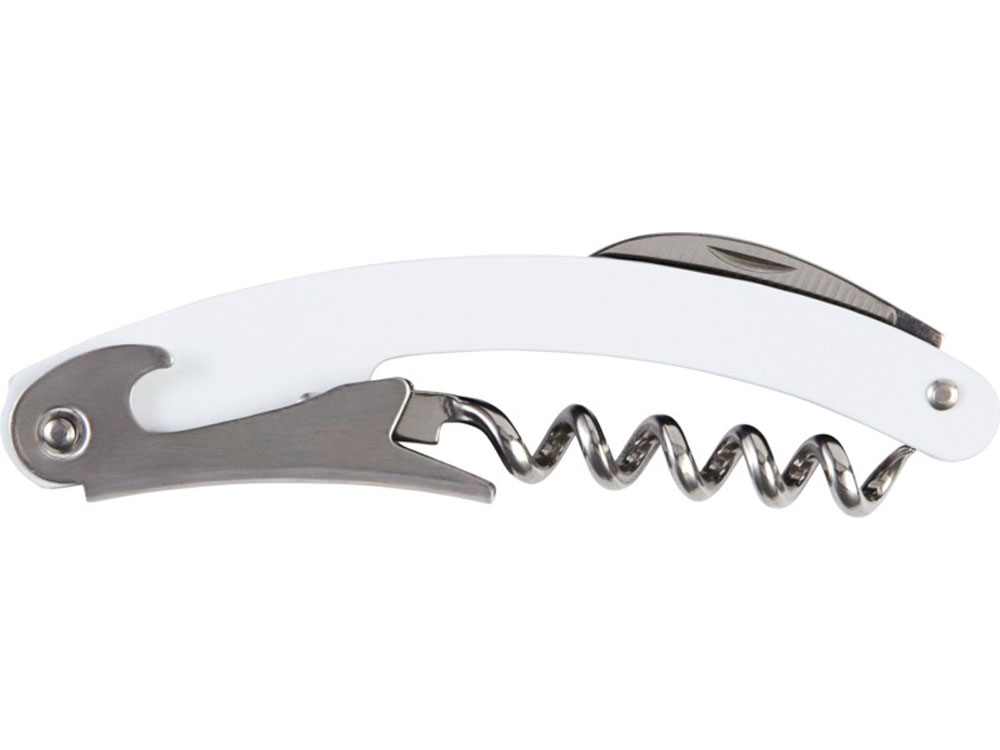 Складной нож из нержавеющей стали с цветным корпусом с обрезчиком для фольги и открывалкой для бутылок. Нержавеющая сталь. Гравировка (оптоволоконный лазер) (Без чернения) на данный товар осуществляется бесплатно. Оплачивается только настройка оборудования в размере 1000 рублей на весь тираж.