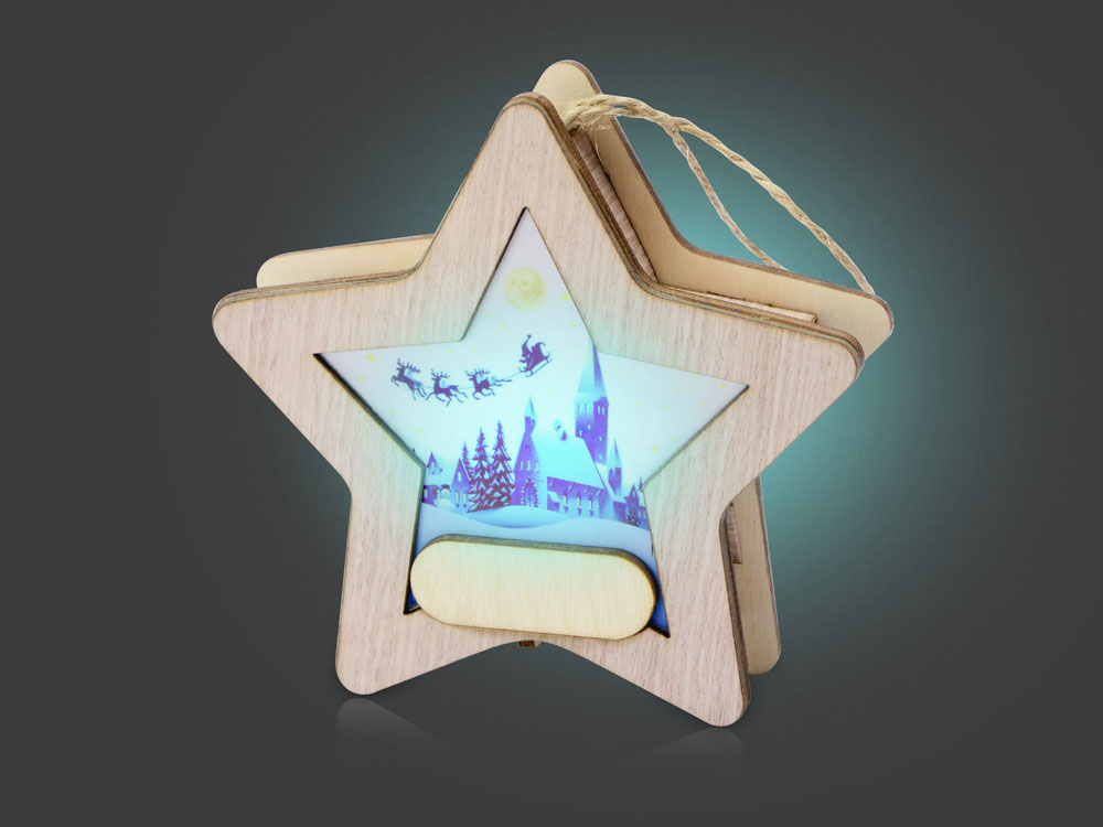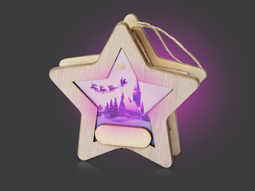 Новогодняя подвеска для елки станет прекрасным вариантом подарка: посмотрите, эти игрушки видно не только при свете дня, но и в темноте, ведь они могут светить сами! Игрушка с подсветкой выполнена из фанеры, фрагмент с изображением — напечатан на пропускающем свет материале. Подвеска сияет мягким разноцветным светом, подчеркивая пейзаж. Станет прекрасным вариантом для подарка, который будет радовать ваших адресатов долгие годы, каждую зиму красуясь на зеленых лапах елки. Гравировка (CO2 лазер) (Без чернения) на данный товар осуществляется бесплатно. Оплачивается только настройка оборудования в размере 1000 рублей на весь тираж.
