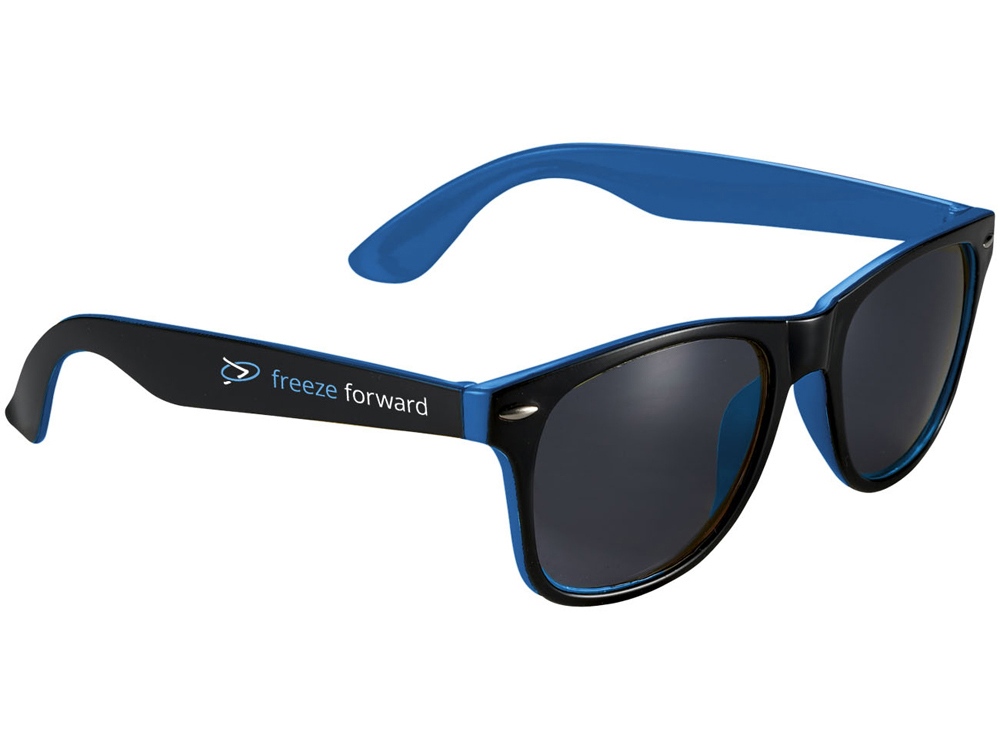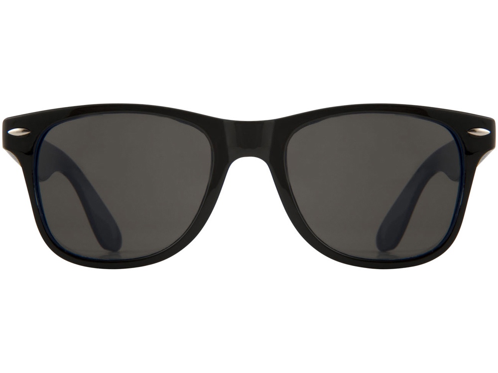 Солнцезащитные очки Sun Ray — черные с цветной вставкой. Солнцезащитные очки в стиле ретро в двух тонах с внутренним цветным покрытием и линзами 3 категории. Соответствуют стандартам EN ISO 12312-1 и UV400. ПК-пластик. Тампопечать (1 цвет (цветные изделия)) на данный товар осуществляется бесплатно. Оплачивается только настройка оборудования в размере 4000 рублей на весь тираж.