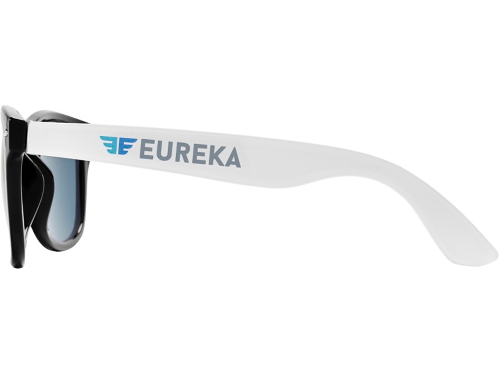 Солнцезащитные очки Sun Ray в стиле ретро с белыми дужками с различными вариантами декора. В соответствии со стандартами EN ISO 12312-1 и UV 400 линзы относятся к категории 3. Тампопечать (1 цвет (белые изделия)) на данный товар осуществляется бесплатно. Оплачивается только настройка оборудования в размере 4000 рублей на весь тираж.