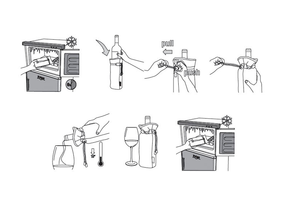 Охладитель в виде мешочка сохранит идеальную температуру бутылки шампанского в течение всего приема пищи. Храните охладитель в морозильной камере, чтобы он был готов к использованию в случае необходимости.