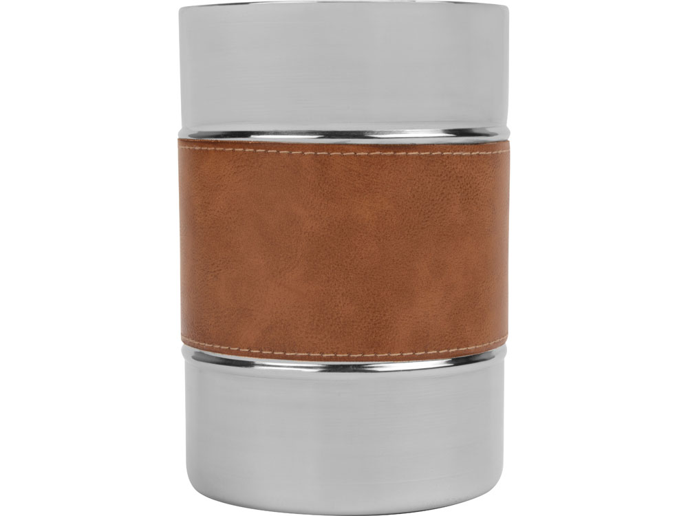 Благодаря двойным стенкам этот компактный и небольшой по объему кулер не позволит вашем напитку согреться в течение всего вечера. Более того, на корпусе охладителя «Bradley» имеется благородная вставка из искусственной кожи, на которой эффектно будет смотреться любой логотип или корпоративный слоган.