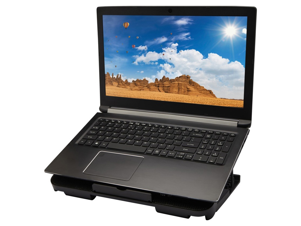 Охлаждающая подставка для ноутбука с 4 уровнями регулировки высоты для игр или просмотра фильмов под наиболее удобным углом (10°-23°). Два бесшумных вентилятора обеспечивают сильный поток воздуха для предотвращения перегрева ноутбука. Большая плоская поверхность, совместимая с большинством ноутбуков на рынке, может выдержать вес до 20 кг. Подставку можно полностью сложить для удобной транспортировки. Оборудована 2 встроенными USB-портами, которые можно использовать в качестве USB-концентратора, поддерживающего USB 2.0 со скоростью передачи данных до 60 МБ/с. Поставляется в коробке из экологичного материала.