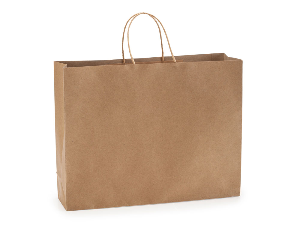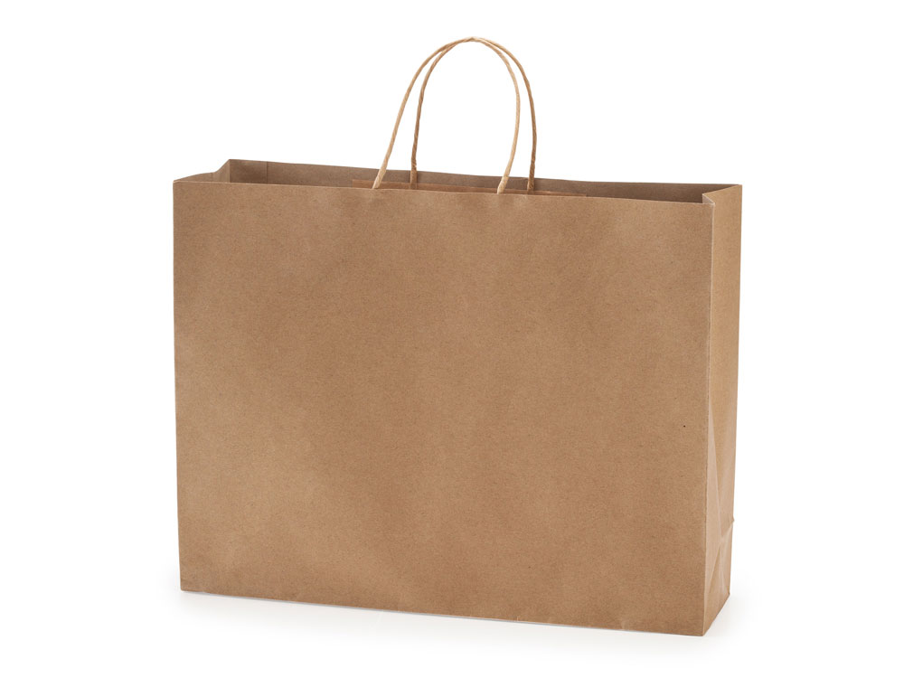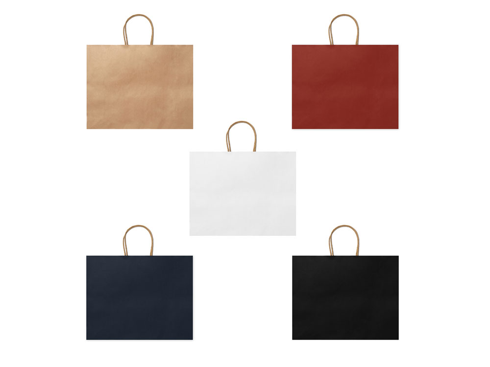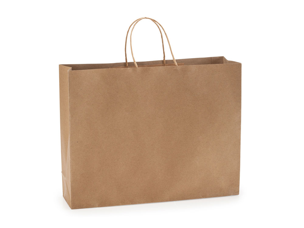 Бумажный пакет 110 г/кв.м натуральной отделки с усиленными короткими ручками витого дизайна.