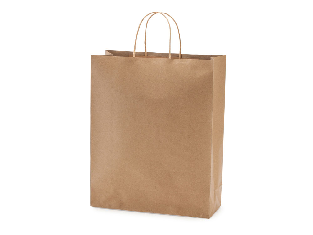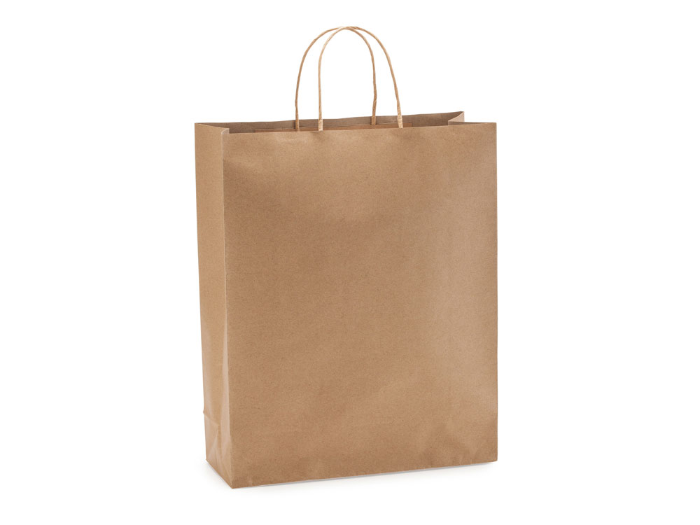 Бумажный пакет 110 г/кв.м натуральной отделки с усиленными короткими ручками витого дизайна.