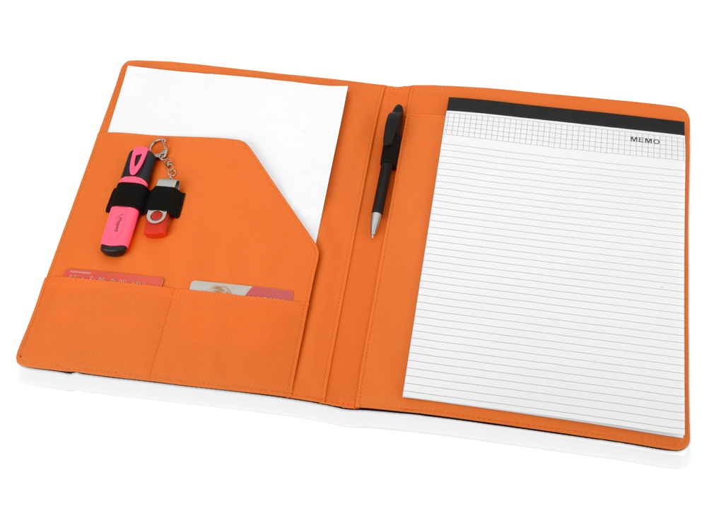 Папка позволит не только аккуратно перевозить необходимые документы, но и своевременно делать заметки во время переговоров благодаря блокноту на 20 листов. Отличная идея для подарка сотрудникам организации.