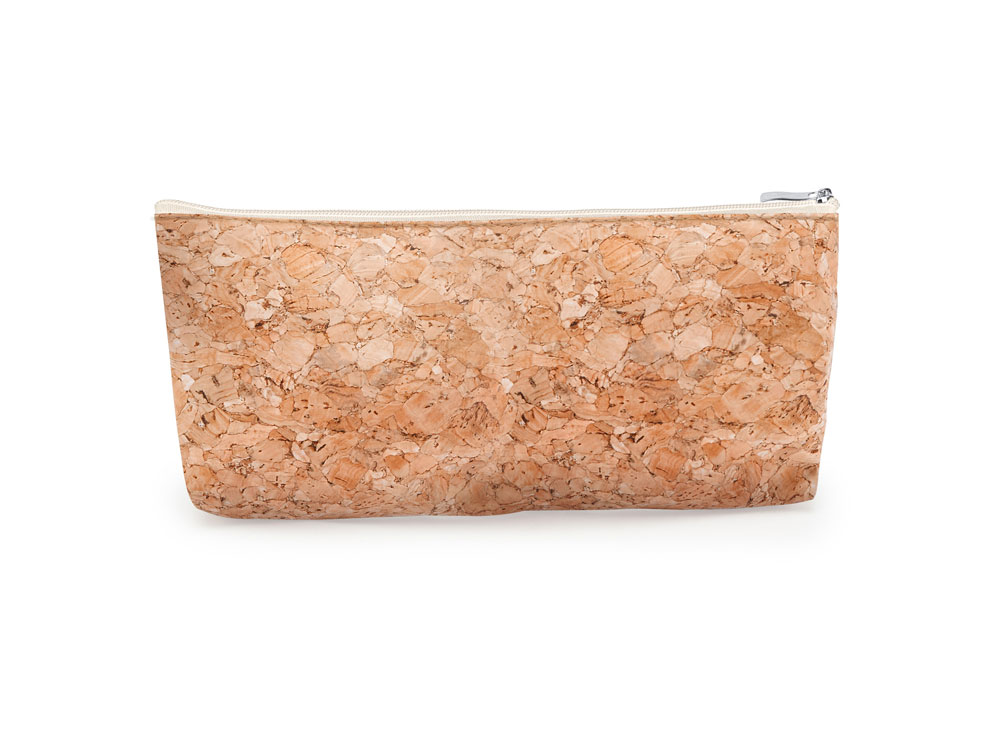 Пенал из натуральной пробки с внутренней подкладкой из полиэстера и застежкой-молнией.