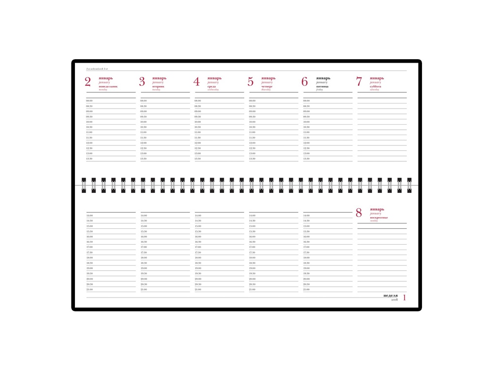 Планинг на 2024 год. Тиснение (Блинт) на данный товар осуществляется бесплатно. Оплачивается только настройка оборудования в размере 6200 рублей на весь тираж.