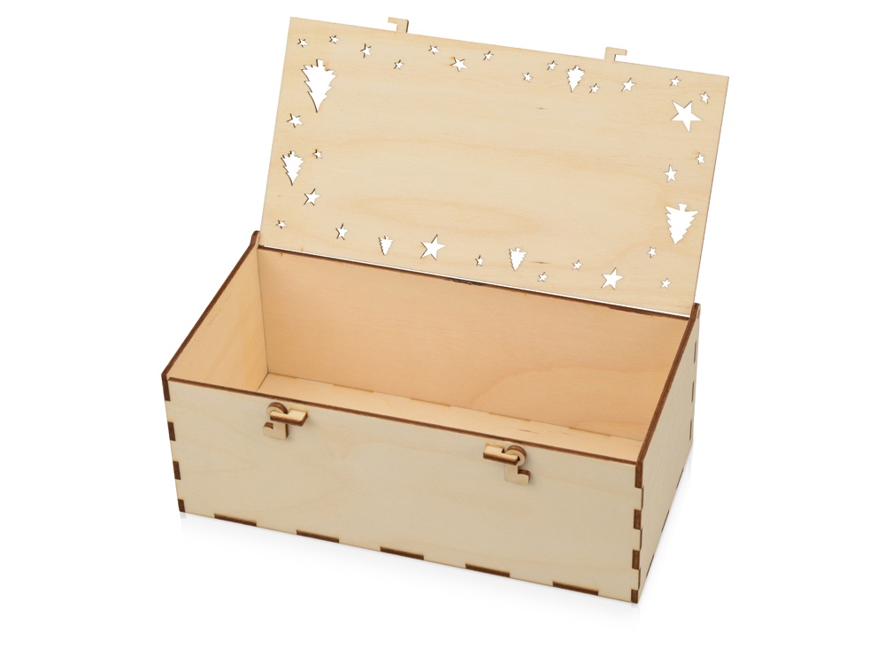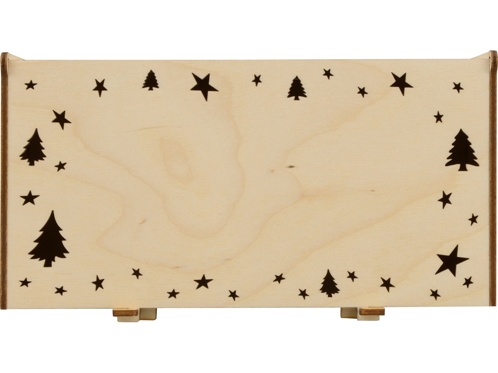 Подарочная коробка в виде небольшой шкатулки подходит для нанесения информации или логотипа на крышке. Орнамент в виде звездочек на крышке украсит ваш подарок, а если внутрь положить несколько электронных свечей, то тени от света свечей оставят причудливые узоры на стенах и потолке. Оригинальная подарочная упаковка «Шкатулка» — отлично подойдет как для новогодних подарков, так и для презентов по любому другому поводу. Гравировка (CO2 лазер) (Без чернения) на данный товар осуществляется бесплатно. Оплачивается только настройка оборудования в размере 1000 рублей на весь тираж.