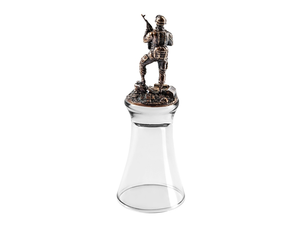 Подарочная стопка-чарка армейская с литой объемной скульптурной композицией. Пока не выпито содержимое, поставить будет нельзя! Скульптурная композиция изготовлена в технике мелкой пластики с высочайшей степенью детализации. Материал скульптурной композиции бронза. Художественное литье, пайка, полировка. Авторская ручная работа.