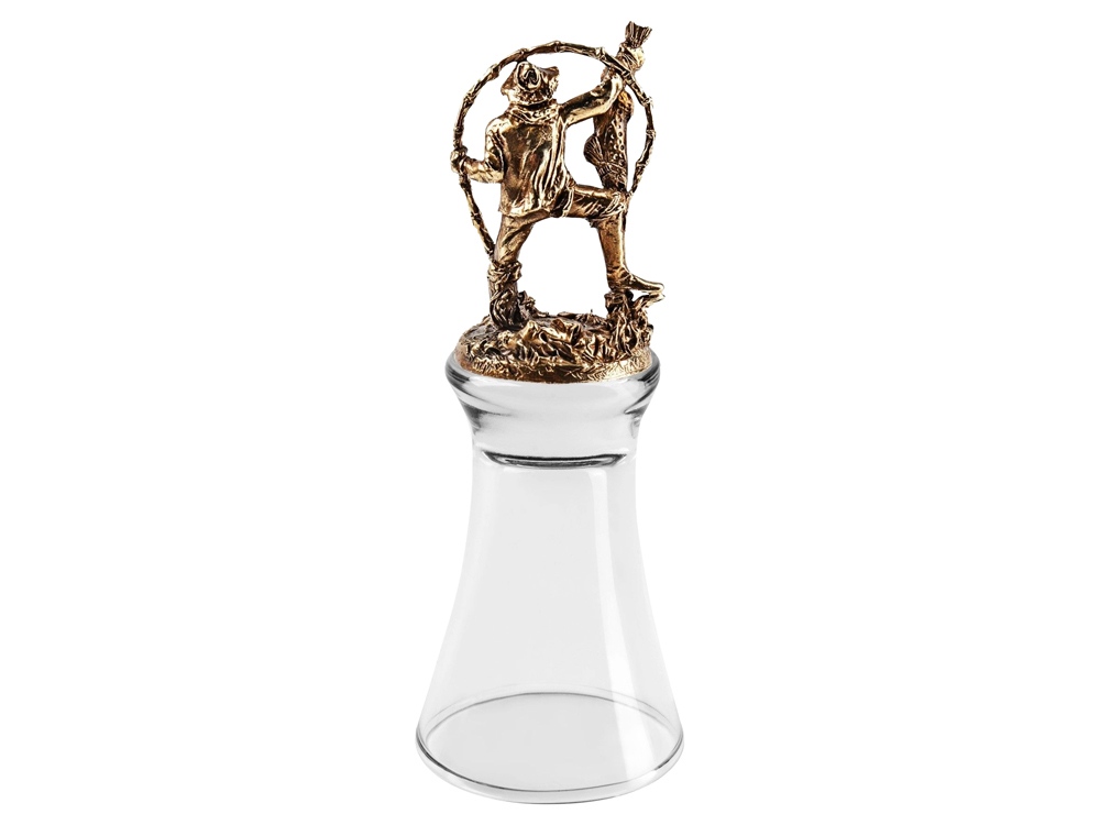 Подарочная стопка-чарка рыбацкая с литой объемной скульптурной композицией ‘Рыбак с уловом’. Пока не выпито содержимое, поставить будет нельзя! Скульптурная композиция изготовлена в технике мелкой пластики с высочайшей степенью детализации. Материал скульптурной композиции бронза. Художественное литье, пайка, полировка. Авторская ручная работа.