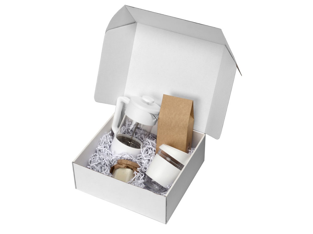 | Комплектность | френч-пресс 600 мл, стеклянный стакан с силиконовой крышкой и манжетой 350 мл, кофе зерновой 100 г, бумажный наполнитель 50 г, подарочная упаковка 26, |