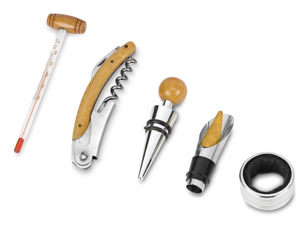 Роскошный набор аксессуаров для вина Кот-де-Сезан – отличный подарок для истинных ценителей. В комплект входят воротничок на бутылку, воронка-аэратор, пробка для бутылки, штопор-открывалка, термометр. Упакованы в красивый деревянный футляр. Отличный вариант имиджевой продукции для ресторанов, гостиниц и винных магазинов. Гравировка (оптоволоконный лазер) (Без чернения) на данный товар осуществляется бесплатно. Оплачивается только настройка оборудования в размере 1000 рублей на весь тираж.