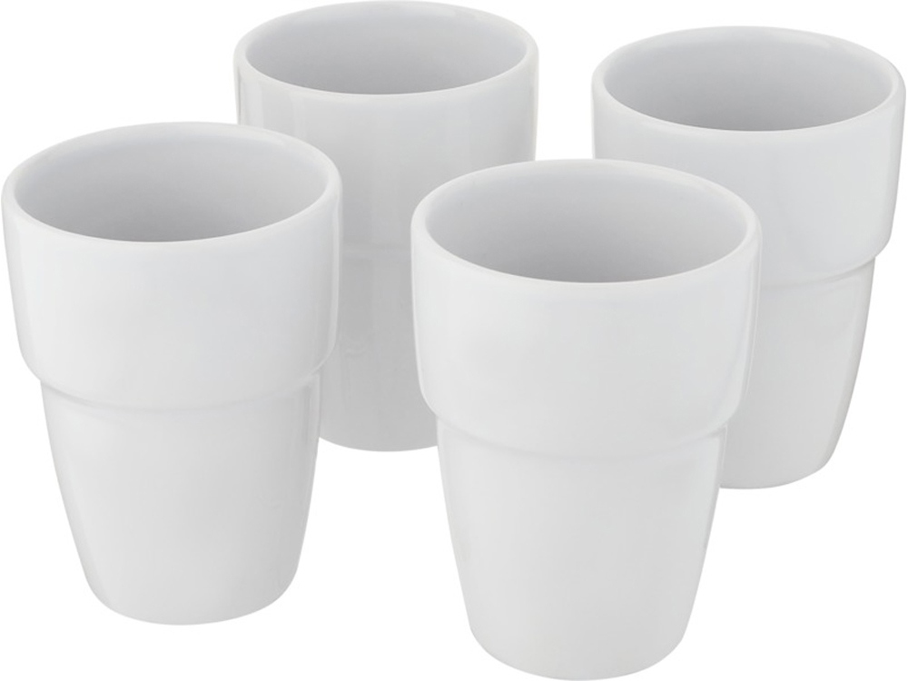 Подарочный набор из четырех керамических кружек, которые можно ставить друг на друга, за счет чего они занимают мало места и имеют аккуратный вид в офисе или дома. Объем 280 мл. Можно мыть в посудомоечной машине независимо от методов нанесения печати. В подарочной коробке из переработанного картона.
