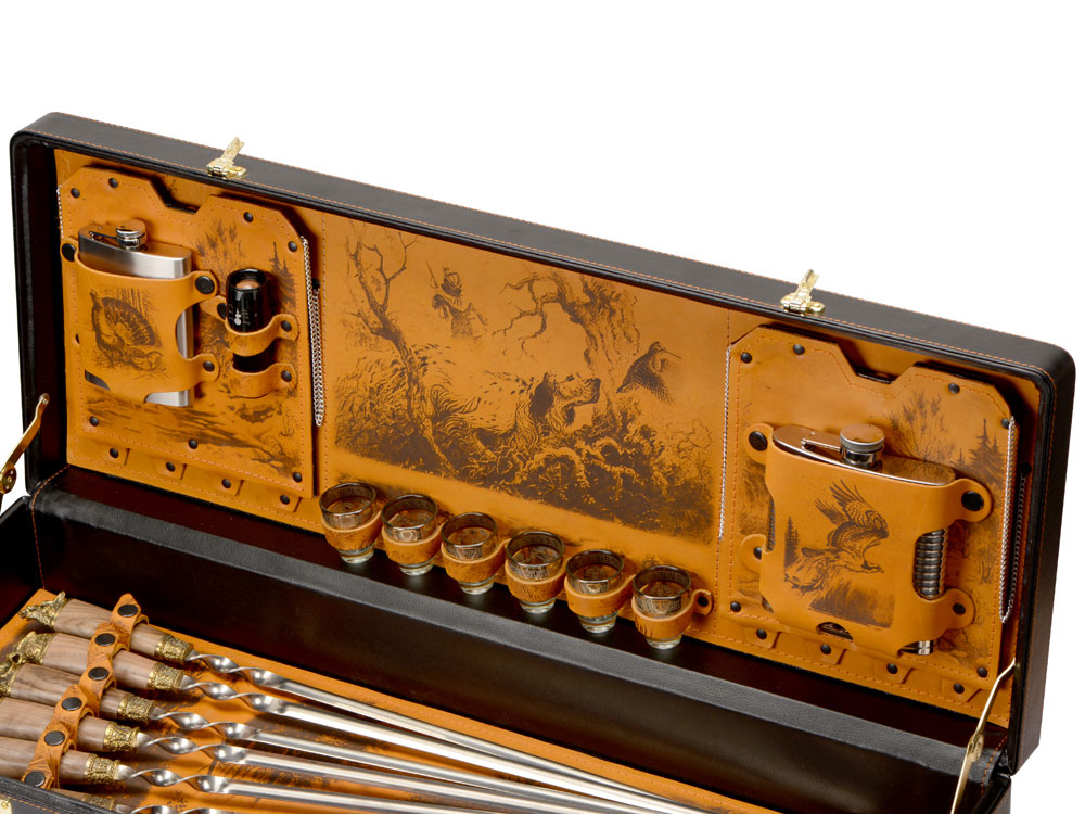 Кейс из сплит-кожи, с повышенной износостойкостью, внутренняя отделка натуральная кожа с художественным выжиганием