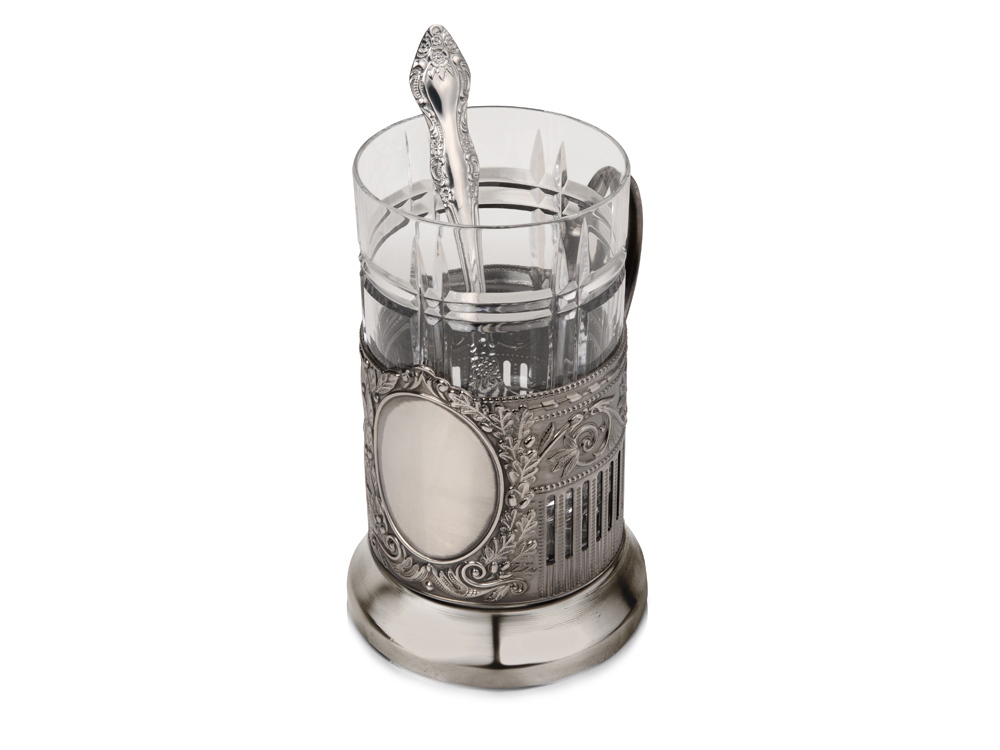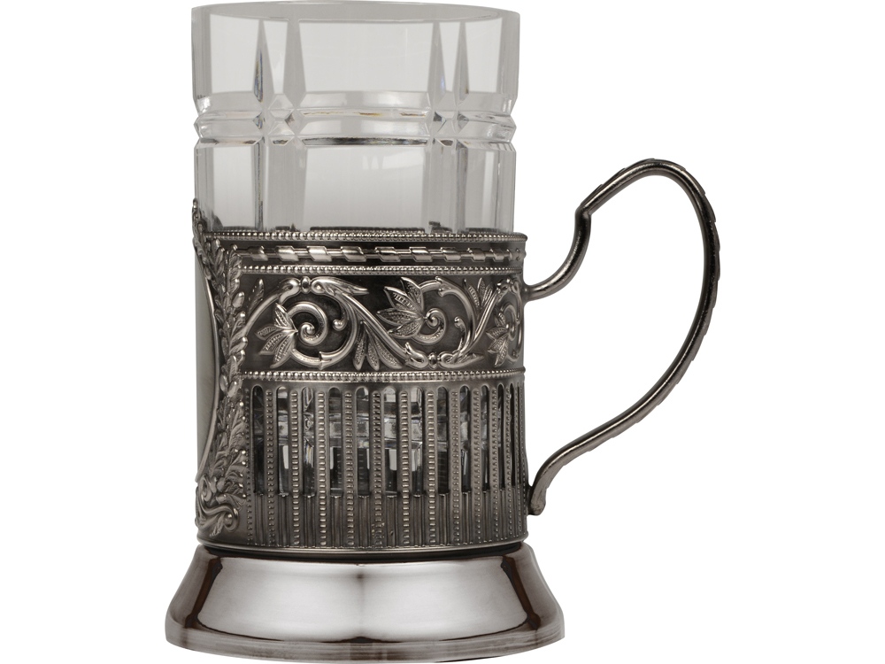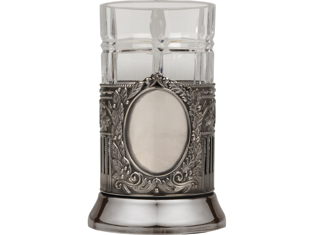 Подстаканник с хрустальным стаканом — это изысканный подарок для ценителей русских традиций и оригинальных подарков. С одной стороны подстаканник выполняет практическую функцию — поддерживает стакан и не дает обжечься горячим напитком. А с другой — отсылает нас в дореволюционную эпоху и совмещает в себе национальный дух и художественную эстетику. Гравировка (оптоволоконный лазер) (Без чернения) на данный товар осуществляется бесплатно. Оплачивается только настройка оборудования в размере 1000 рублей на весь тираж.