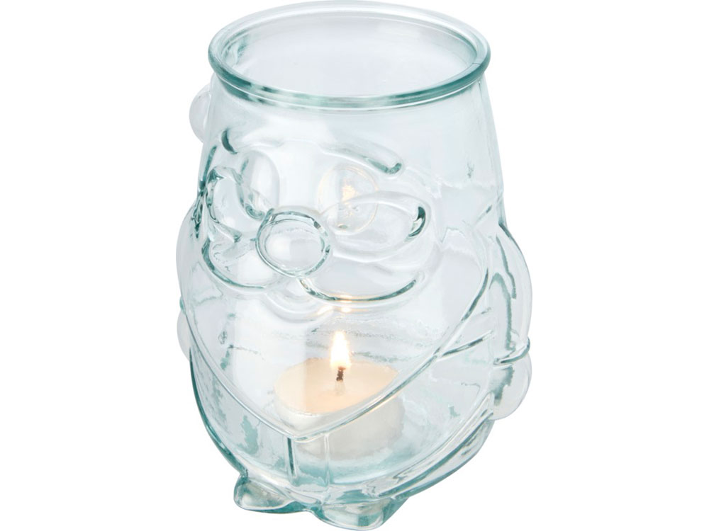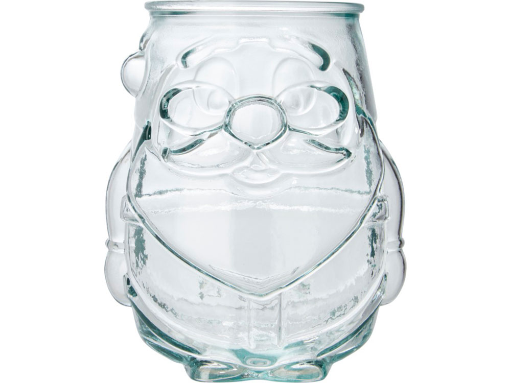 Подставка для чайной свечи из переработанного стекла в форме Санта-Клауса. Для создания этой подставки была использована 1 стеклянная переработанная бутылка. Переработанное стекло не отличается ничем по качеству от обычного, но при этом является более экологичным, ведь на изготовление этого материала тратится меньше энергии, сырья и примесей. Чайная свеча не входит в комплект.