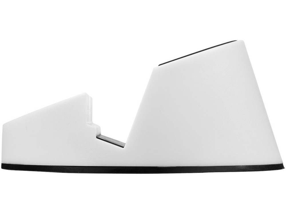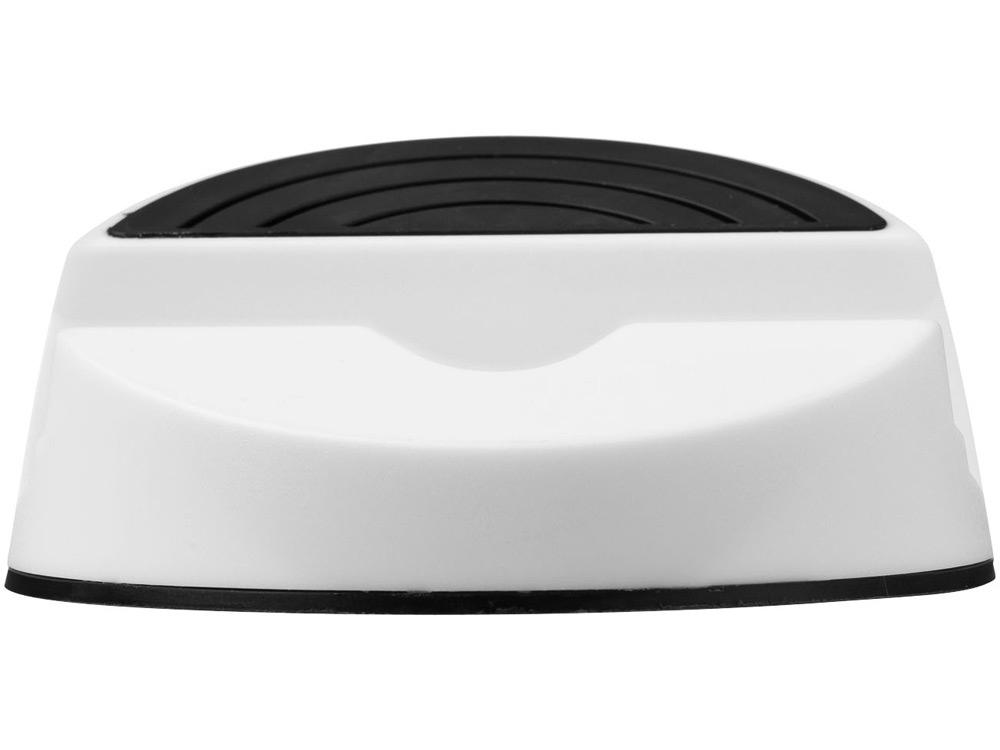 Удобная подставка для мобильного телефона. Круглый пластиковый корпус будет прекрасно смотреться в современном офисе. На пластиковый корпус возможно нанесение персонализации по вашему эскизу. Тампопечать (1 цвет (белые изделия)) на данный товар осуществляется бесплатно. Оплачивается только настройка оборудования в размере 4000 рублей на весь тираж.