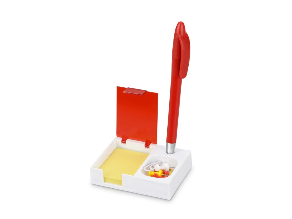 Яркая и удобная поставка под ручку, канцелярские скрепки и бумажный блок (4 х 5 см) превосходно организует ваше рабочее место. Отличный подарок при проведении промо-акций. Тампопечать (1 цвет (белые изделия)) на данный товар осуществляется бесплатно. Оплачивается только настройка оборудования в размере 4000 рублей на весь тираж.