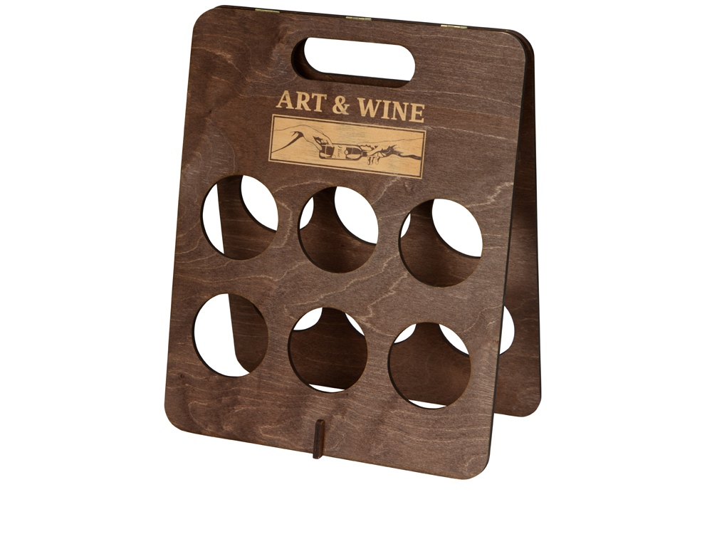 Подставка под винные бутылки «Groot» – незаменимый аксессуар, который пригодится на любом корпоративном мероприятии и украсит праздничный стол. Она изготовлена из легкого, но при этом крепкого материала и имеет удобную ручку для переноски. Подставка выигрышно подчеркнет символику компании с помощью гравировки благодаря большому пространству для брендирования. В комплекте идет индивидуальная крафтовая коробка со стильным дизайном. Гравировка (CO2 лазер) (Без чернения) на данный товар осуществляется бесплатно. Оплачивается только настройка оборудования в размере 1000 рублей на весь тираж.